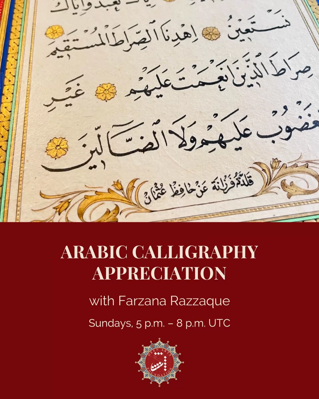 The Arabic Calligraphy Appreciation course is four weeks long and introduces the student to an awareness of the world of calligraphy and the discipline required in learning to be a calligrapher.